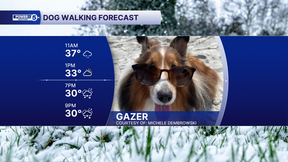 5+ hour, 21+ min ago (181+ words) Happy Sunday! Michele Dembowski sent us this adorable photo of Gazer in the sand. Today is a good day for this, as it feels like the 20s outside this afternoon, so warm thoughts are much needed ... Happy Sunday! The morning rain quickly moves out before noon, unleashing a very cold wind with gusts of up to 40 mph. That could even lead to some flakes later. Gazer is a 7-year-old Shetland Sheepdog who loves to stare you down, hence the name Gazer. Being a sheltie, he loves to talk a lot by barking. He does herd sheep, competes in dog obedience competitions, and loves to people-watch. Wind chills will be in the 20s most of the day, and many will fall to the freezing mark by sunset. The cold and wind combination with leftover moisture could bring some lake effect snow showers from…...
