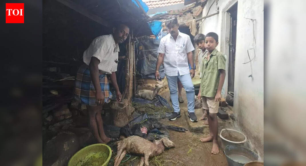 2+ hour, 24+ min ago (178+ words) Salem: Stray dogs mauled three goats to death at a pen owned by a 68-year-old woman at Allikuttai near Ponnammapet in the city in the early hours of S. Salem: Stray dogs mauled three goats to death at a pen owned by a 68-year-old woman at Allikuttai near Ponnammapet in the city in the early hours of Sunday Three more goats were wounded in the attack.The goats, owned by V Lakshmi Ammal, were brought back to the pen behind her house after grazing on Saturday night When she went to check on them around 6am on Sunday, she found three goats lying dead, while three others were wounded "The injured goats are fighting for their lives," Lakshmi Ammal reported She alerted veterinarians from the animal husbandry department, who performed autopsies on the deceased goats Meanwhile, the locals have urged the Salem…...